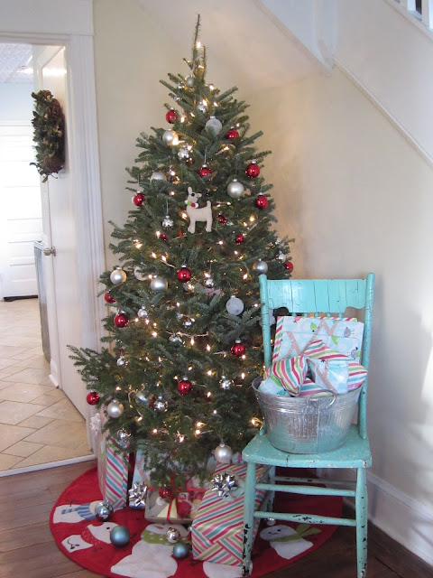 You have a beautiful home! I really like that bluish colored chair by the tree with the galvanized bucket filled with packages! Great job!